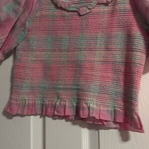 Love Shack Fancy Cropped Top - Ruffled Cute Puffy Sleeves - Size Small - Excellent Condition - Light Pink and Blue - Stretch Top 🩷