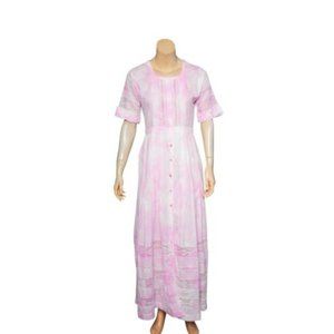 Women's Casual Button Down Tie Dye Pink Boho Midi.