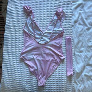 Made with the same kind of soft femininity as the brand's dresses, LoveShackFancy's 'Jasper' swimsuit is designed with a ruffled plunging V-neckline. Tie the self-belt in countless configurations to cinch the waistline and create an hourglass silhouette.