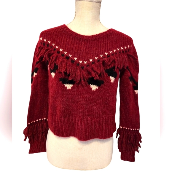 Love Shack Fancy Long Sleeve Crop Cable Knit Pullover Sweater Red Sz S Brat Y2k