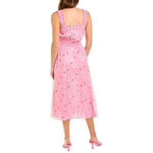 Features: sleeveless, square neckline, shirred waist, cascading hem, loose flowy fit, fully lined, 100% cotton, pink floral print, in Coral blaze