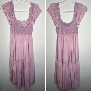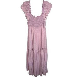 Love Shack Fancy Purple Pink Pansy Floral Burnley Midi Dress Size Small