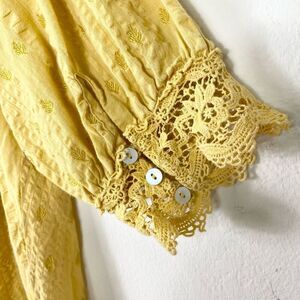 Love Shack Fancy Robin Yellow Boho Embroidered Yoked Crochet Lace Trim Blouse XS