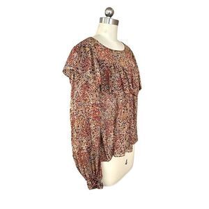 Love Shack Fancy Silk Print Peasant Blouse Sheer Ruffle Boho Floral S