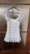 Blue printed cotton (100% Cotton). Sheath. Square neck. Short sleeves. Pull-on. 35” from shoulder to hemline. Imported.