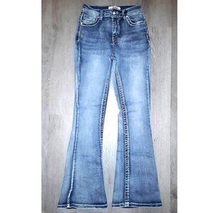 Love Soho Rhinestone Bling Flared Jeans Size 1 Distressed Denim Flares Wide Leg