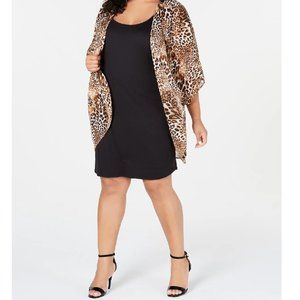 🎁Love Squared Trendy Plus Size Sheath Dress & Animal-Print Overlay