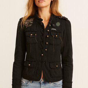 Love Stitch Black Military Boho Military style button front Jacket Size S/M