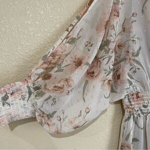 Floral Metallic Gold & Silver Flowy Mini Dress