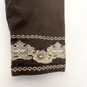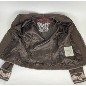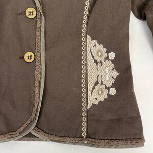Love Stitch Embroidered Fitted Jacket Blazer Brown Women's Sz. M