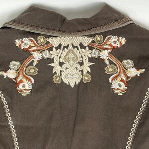 Love Stitch Embroidered Fitted Jacket Blazer Brown Women's Sz. M. Fully lined, in very nice condition.