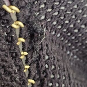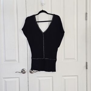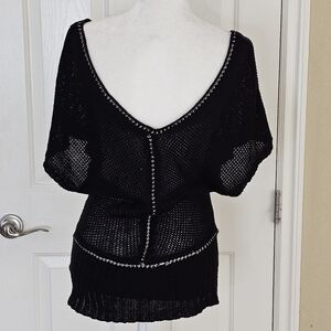 Love Stitch Net Weave Crotchet Sweater Black Size S . please see photos. one minor hole on the back bottom near seam. a few snags. This is a netted sweater