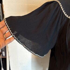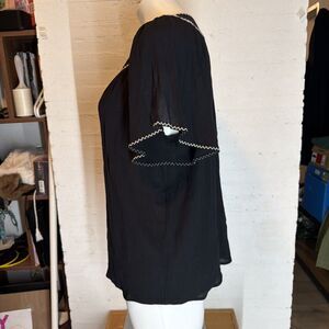 A classic bohemian, lightweight flutter sleeve top with contrasting embroidery.