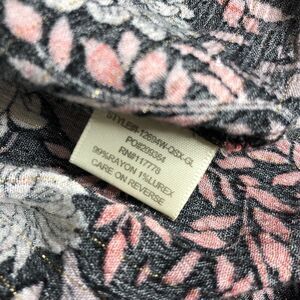 Features-Hook & Eye closure at chest. Lightweight. Metallic accent thread. Bell/Flare sleeve. Floral print.