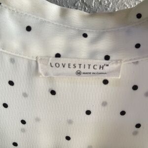 Add timeless charm to your wardrobe with this Love stitch White & Black Polka Dot Blouse in size Medium. Designed with a relaxed fit and made from a lightweight rayon blend, this top is perfect for warm-weather wear or effortless layering year-round.