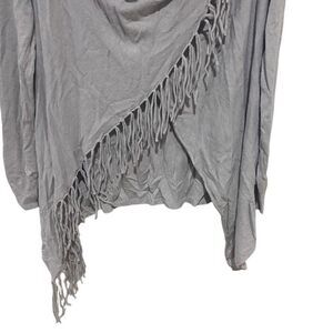Love Stitch gray small long sleeve wrap fringe sweater