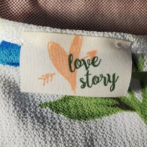 Love Story White Long Duster Cardigan Women W/ Blue Roses Ruffle Layered Hem