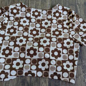 Love Streak Brown & Cream Retro Floral Tie Front Crop Top – Size M
