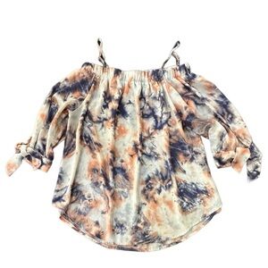 Love Streak Open Shoulder Tie Dye Abstract Navy Blue Coral Flowy Blouse …