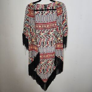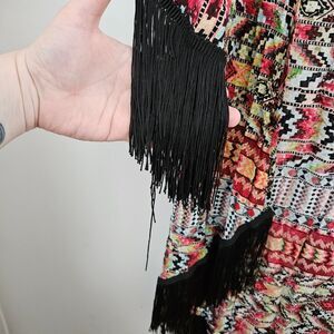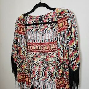 Love Tease Cardigan Kimono Lightweight Pattern Fringe Print Casual Open Front