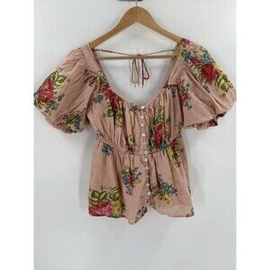 Love The Label Anthropologie Rosette Babydoll Button Up Blouse Size XSMALL EUC