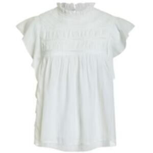 Love The Label Georigia White Cotton Flutter Sleeve Popover Top LLU23-3121 Small