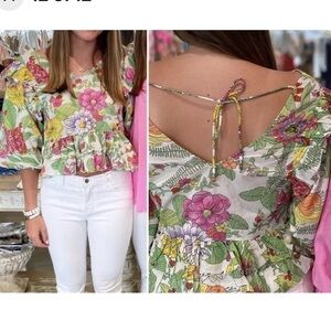 Love The Label Mitzie Floral Ruffle Romantic Blouse Sz XS