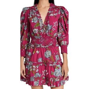 • Features: Lined, Pullover styling, 3/4 length puff sleeves with smocked cuffs, Smocked stretchy waist, Mini length, V neckline, Fuchsia Pink with floral print, Ruffle accents, Wanda Print Dress by Love The Label