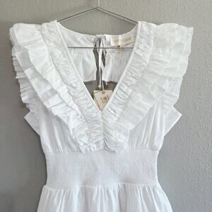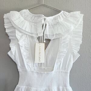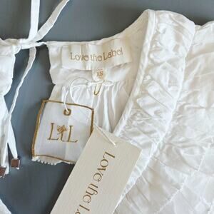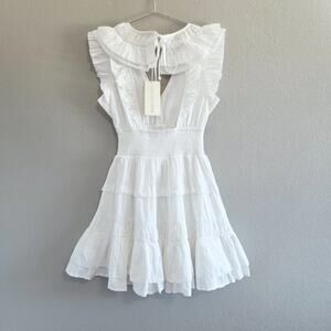 Love The Label Women's White Cotton Tiered Mini Dress Sz XS Ruffles Open Back