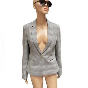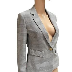 Love Token Fitted Blazer Womens S Houndstooth Black and Gray Office