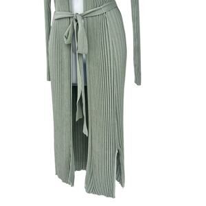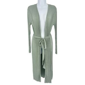 Love Token Sage Green Ribbed Accordion Long Open Front Cardigan Size M