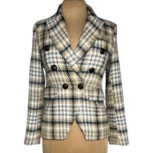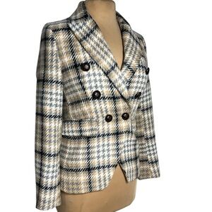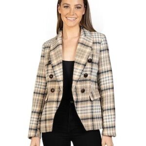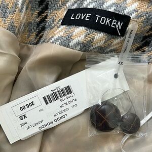 Love Token Tweed Beige Gray Black White Plaid Blazer Size XS LT100-179