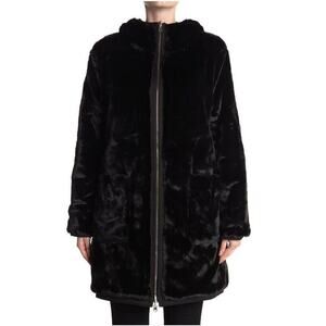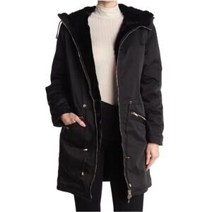 Love Token Women Black Tanya Reversible Faux Fur Winter Parka Jacket Size S