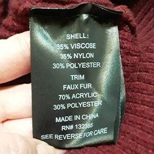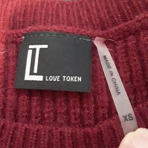 Love Token (Women's XS) Wine colored Pullover Knit Sweater with Faux Fur Cuffs