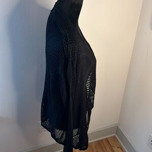 Love Token black pointelle open cardigan draped long sleeves Sz S
