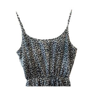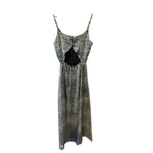 Cute animal print dress with back cut out. Partially lined. Bottom part is sheer. Adjustable straps.