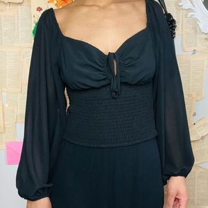 Love Tree Balloon Sleeve Mesh Black Top