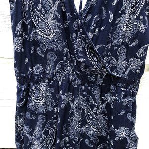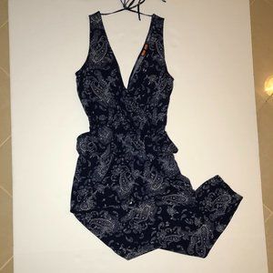 Love Tree Boho / Blue & White Paisley Boho Jogger Jumpsuit in Size Small. Excellent Pre Owned Condition, no flaws or stains.