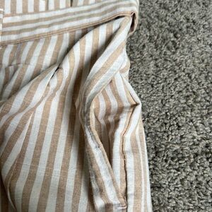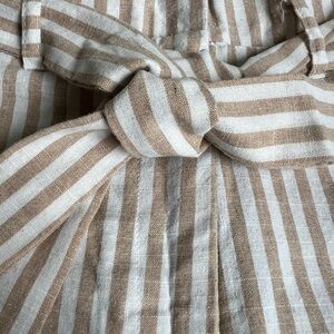 Chic high waist shorts with beige stripes. Features a stylish tie belt. Perfect for casual wear.