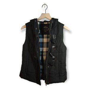Love Tree Black Flannel Lined Hooded Puffer Vest Size Small