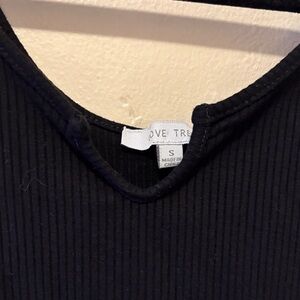 Chic black mini dress by Love Tree. Sleeveless with a fitted silhouette. Perfect for a night out.