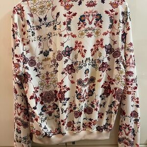 Love Tree Black Pink Floral Zip Up Jacket Womens Large Long Sleeve Pockets