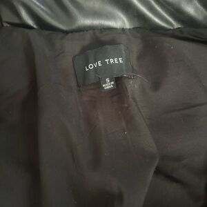 Chic black puffer by Love Tree. Features a sleek design with a zip closure. Ideal for cold weather.