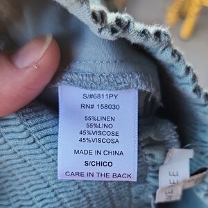 Love Tree Blue/ Green Wide-Leg Linen Blend Pants Stretch Waist Size Small euc Comfortable and versatile.