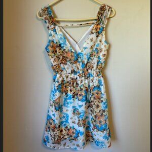 Love Tree Blue Multicolor Floral Print Sleeveless V-Neck Dress Women's Size S