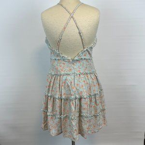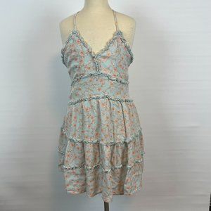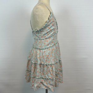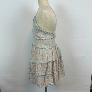 Love Tree Blue & Orange Floral Sleeveless Dress ((size Small))