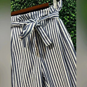 Love Tree Blue Striped Paper Bag Pant - Medium