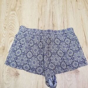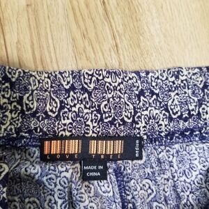 Love Tree Boho Paisley Tie Elastic Waist Linen Shorts Blue White Size Medium