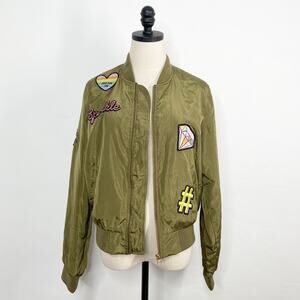 Love Tree retro lightweight army green bomber jacket w/ patches.