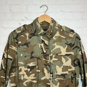 Love Tree Camo Military Jacket Womens Small Full Zip Mock Neck Army Utility